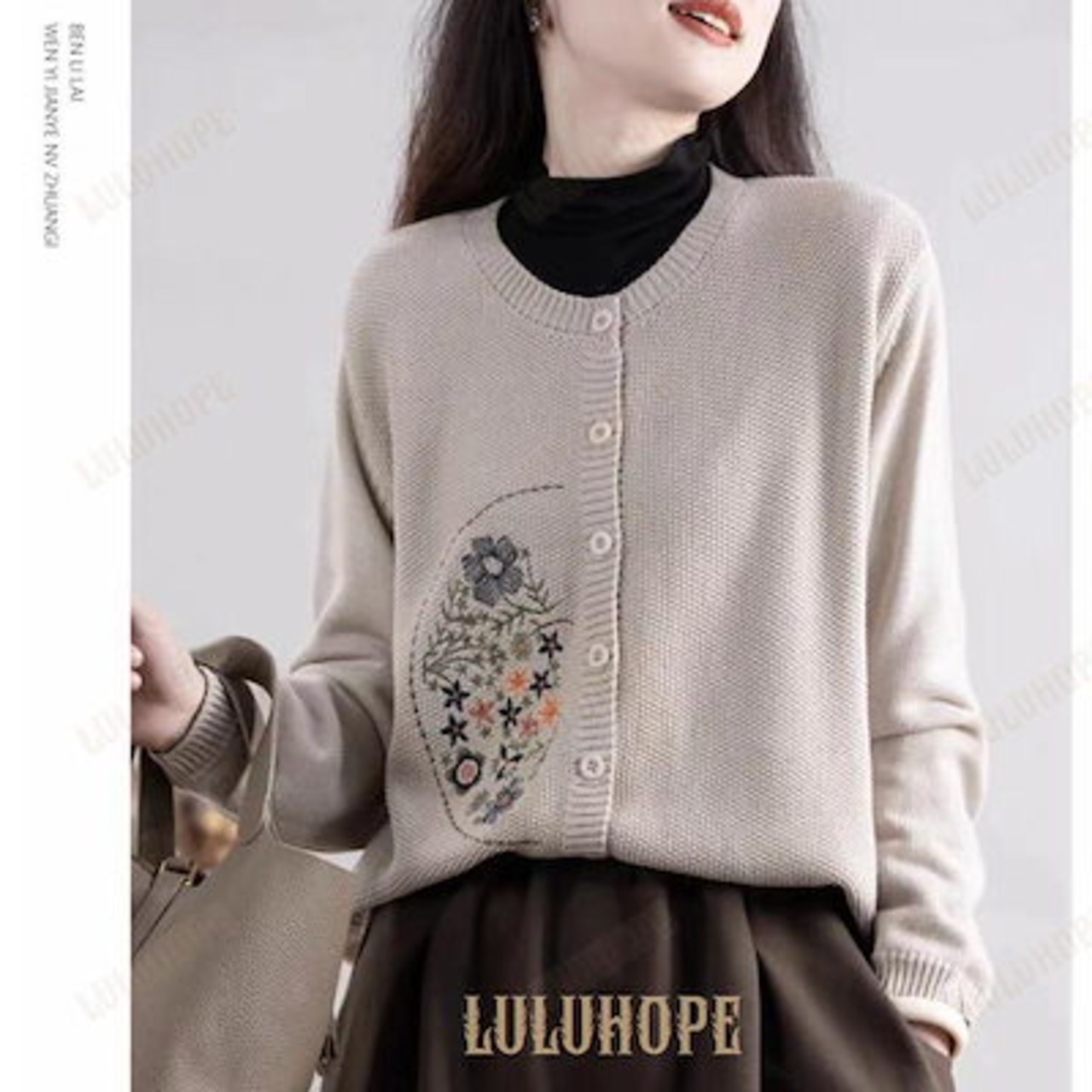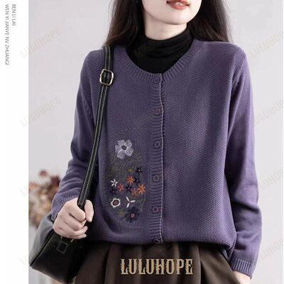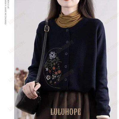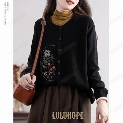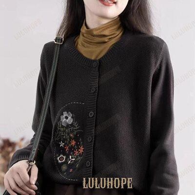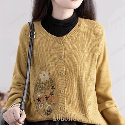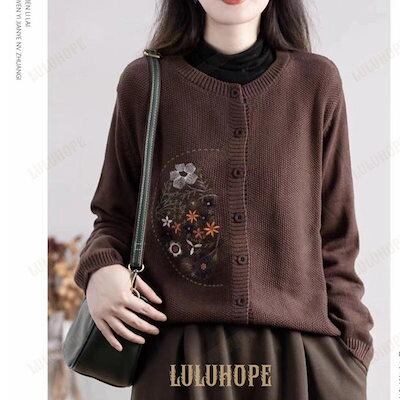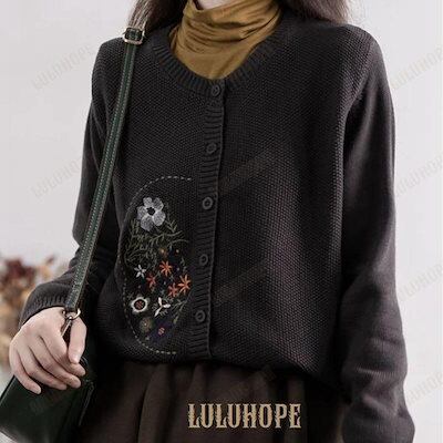 [PassionateRob0ts]く秋冬カーディガン 刺繍 セーター 花柄 ニット レディース トップス 長袖 ファッション カジュアルセーター ロングセーター コート 羽織り