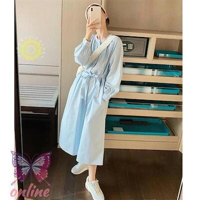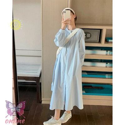 シャツワンピース レディース ロング ワンピース 長袖 ロング シャツ ワンピース ボタン 羽織 前開 長袖 体型カバー 無地 ゆったり シンプル 着痩せ カーディガ