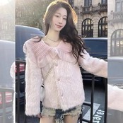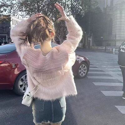 高級感 ショート丈 カーディガン 小香風 フェイクミンク トップス アウター レディース 気質 オールマッチ ジャケット 上着