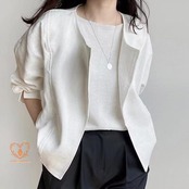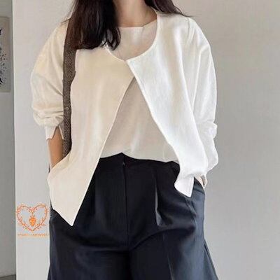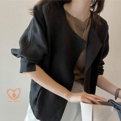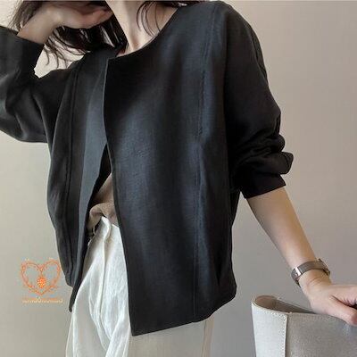 人気ジャケット レディース ノーカラージャケット 春 夏 秋 綿麻風 長袖 七分袖 無地 羽織り UVカット カーディガン サマージャケット カーディガン アウター