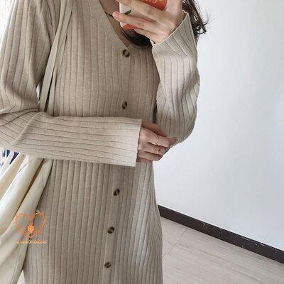 人気ニットワンピース ニットワンピ Vネック レディース 秋冬 ロングカーディガン 前開き 長袖 ロング丈 トップス 薄手ニット