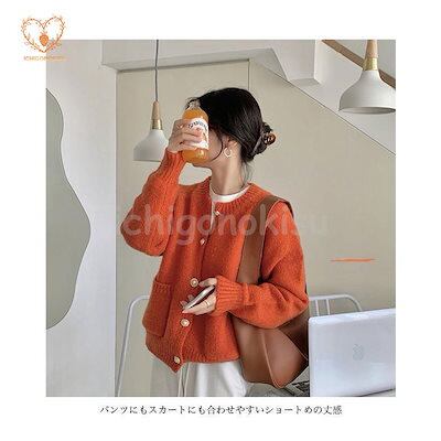 人気ショートカーディガン レディース ニット カーディガン 厚手 カーデ ボタンカーディガン シンプル ラウンドネック オフィス コーディガン 厚手ニット