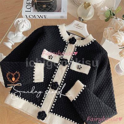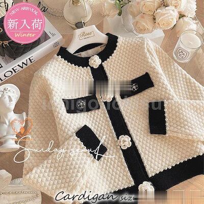 人気ニットカーディガン レディース 秋冬 40代 長袖 ニットコーディガン 花 配色カーディガン ショット丈セーターアウター ゆったり 秋服 オシャレ 韓国風 50代 30代