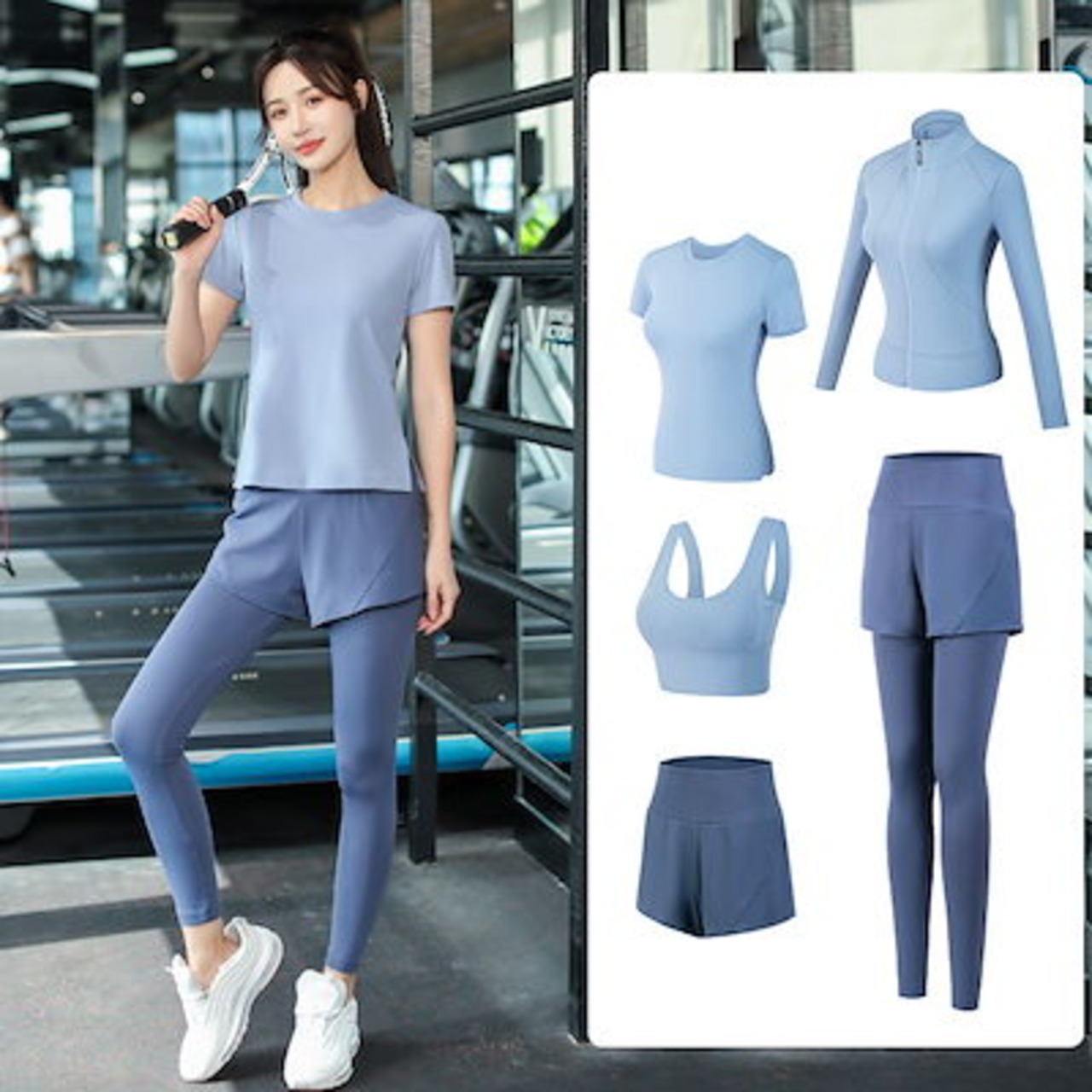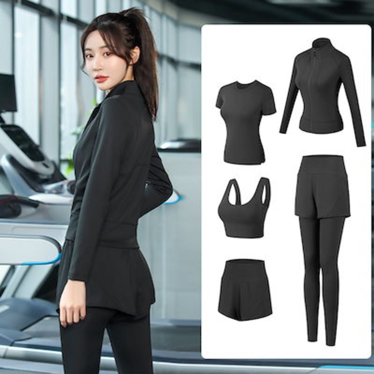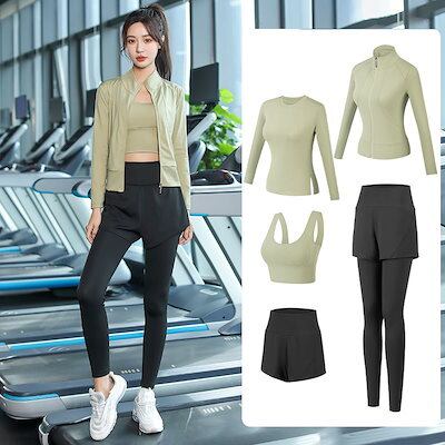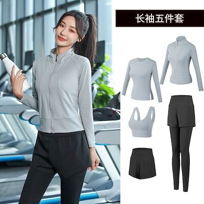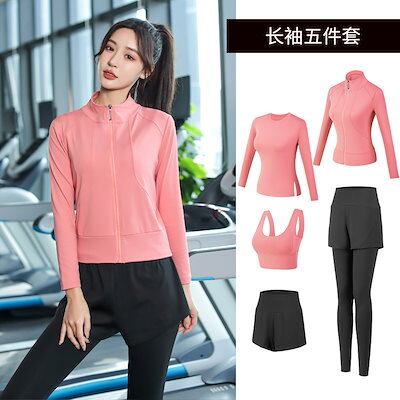 ヨガウェア5点セット レディー着痩せ速乾フィットネスウェア 運動 ヒップアップヨガパンツ上下セット