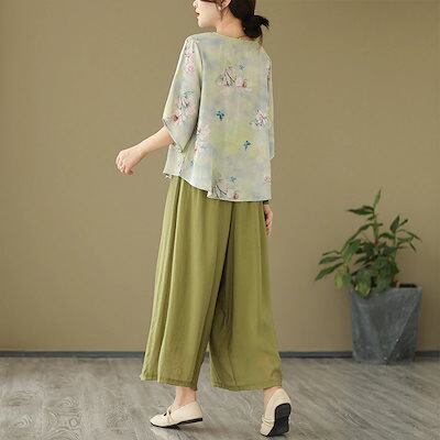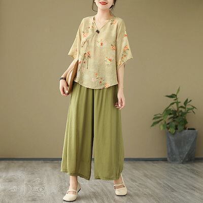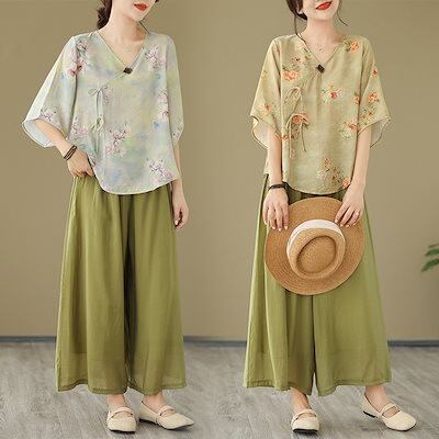 「ファットガール」 民族風 上下セット 春夏 レディース 大人 30代 40代 中年 体型カバー 大きいサイズ セットアップ 中華風 ジャージ 卒業式 ママ フォーマル スーツセットアップ 4 メガ割