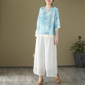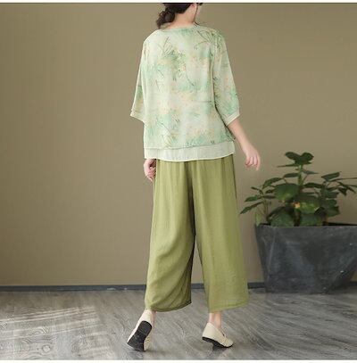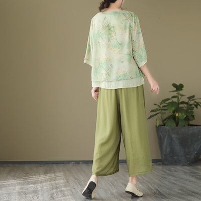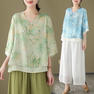 「ファットガール」 民族風 上下セット 春夏 レディース 大人 30代 40代 中年 体型カバー 大きいサイズ セットアップ 中華風 ジャージ 卒業式 ママ フォーマル スーツセットアップ 6 メガ割
