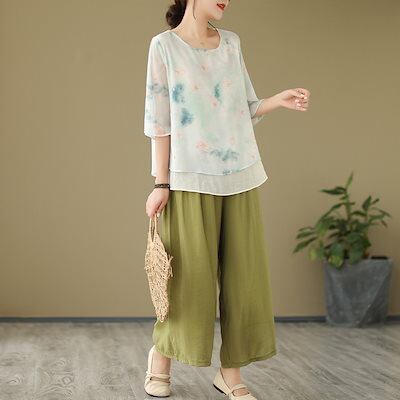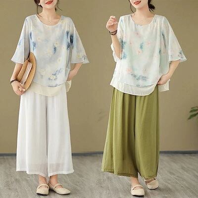 「ファットガール」 民族風 上下セット 春夏 レディース 大人 30代 40代 中年 体型カバー 大きいサイズ セットアップ 中華風 ジャージ 卒業式 ママ フォーマル スーツセットアップ 5 メガ割