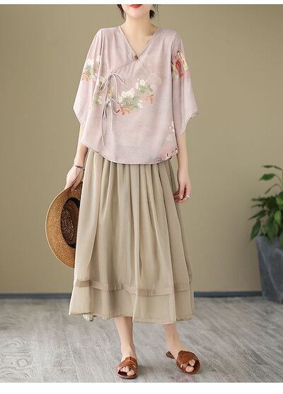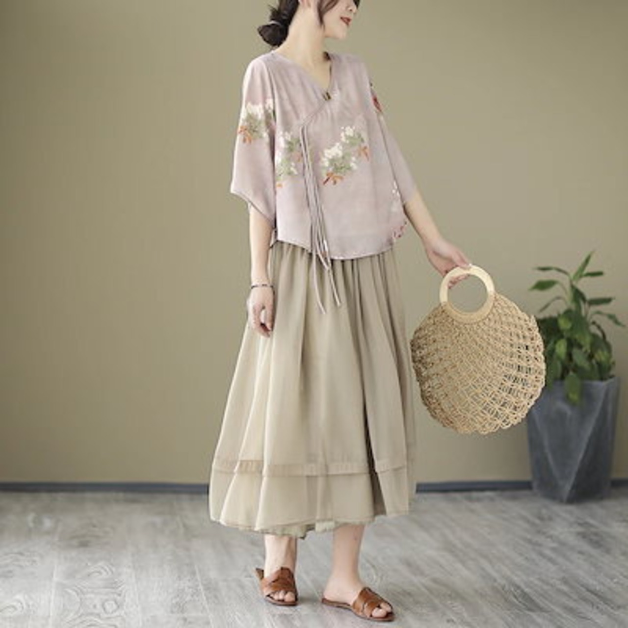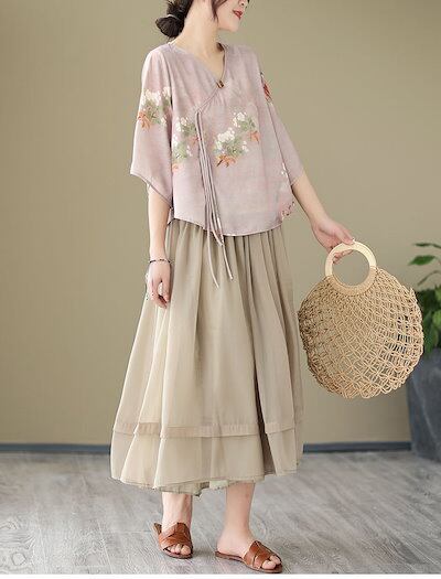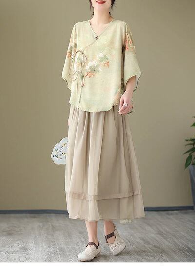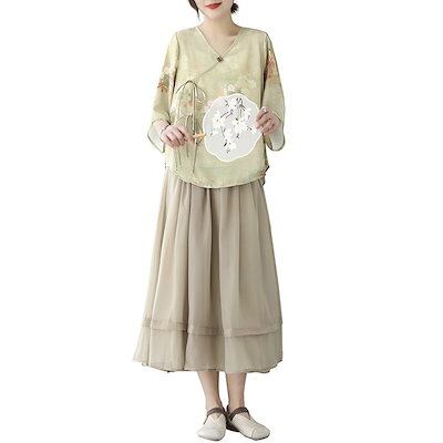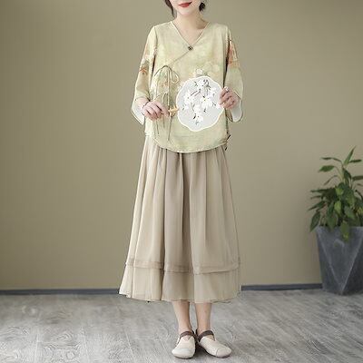 「ファットガール」 民族風 上下セット 春夏 レディース 大人 30代 40代 中年 体型カバー 大きいサイズ セットアップ 中華風 ジャージ 卒業式 ママ フォーマル スーツセットアップ 9 メガ割