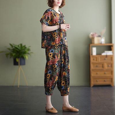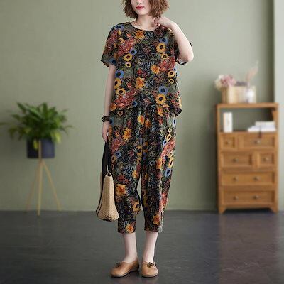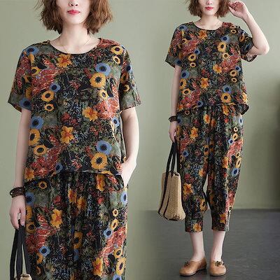 「ファットガール」 民族風 上下セット 春夏 レディース 大人 30代 40代 体型カバー 大きいサイズ セットアップ 中華風 ジャージ 卒業式 ママ フォーマル スーツセットアップ 15 メガ割