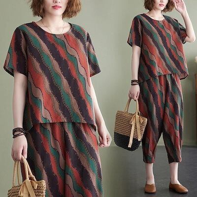 「ファットガール」 民族風 上下セット 春夏 レディース 大人 30代 40代 体型カバー 大きいサイズ セットアップ 中華風 ジャージ 卒業式 ママ フォーマル スーツセットアップ 19 メガ割
