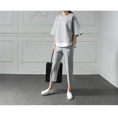 セットアップ レディース 上下セット 春 秋 七分袖 トップス パンツ スウェット 運動着 部屋着 普段着 30代 40代