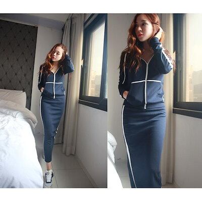 セットアップ レディース 春秋 スウェットセット スポーツウェア 上下セット ロング丈タイトスカート パーカー 運動着/部屋着 運動会 ジャージ ルームウェア