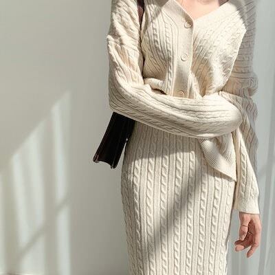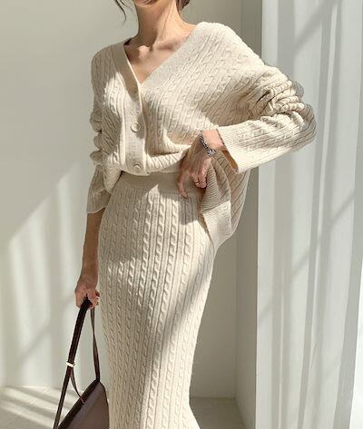 韓国ファッション セットアップ 2点セットスウェット レディースウェア ジャージ 上下セットスカート+ニット長袖