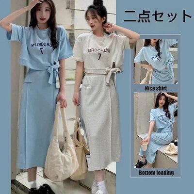夏 涼しく楽ちんセットアップ 2024 人気 セットアップ レディース カジュアル快適 Tシャツ/スカート上下2点セット 怠惰な風 スウェット 半袖 レディース 部屋着 ジャージルー