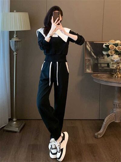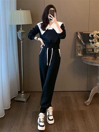 パンツ セットアップ ジャージ ジャージーパンツ ロング スタジャン レディース パーカー 綿 上下セット 長袖 春 秋 2点セット 無地 ポケット 紐 上下セットアップ カジュアル スポーツウェア
