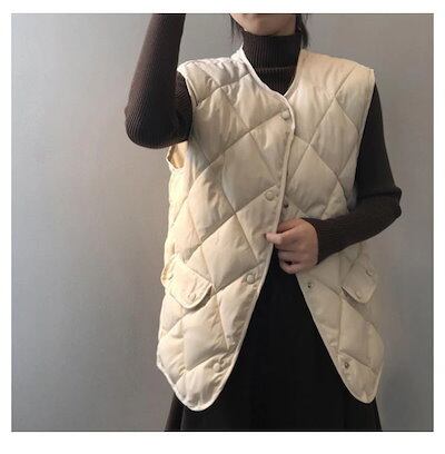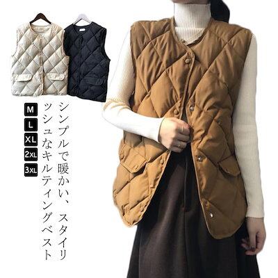 超目玉新品 通勤 前開き アウター 無地 大きいサイズ レディース あったか 暖かい インナーベスト 防寒 中綿ベスト カジュアル キルティング 防風 秋冬物 軽量 ベスト シンプル お洒落 キレイ