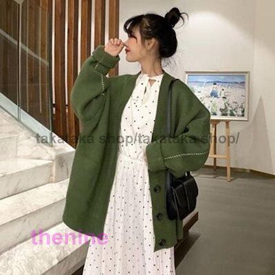 ニットカーディガン レディース セーター カーディガン 秋服 冬服 厚手 長袖 ショート丈 ボタン付き おしゃれ シンプル ゆる感 体型カバー 羽織 通勤 通学 防寒
