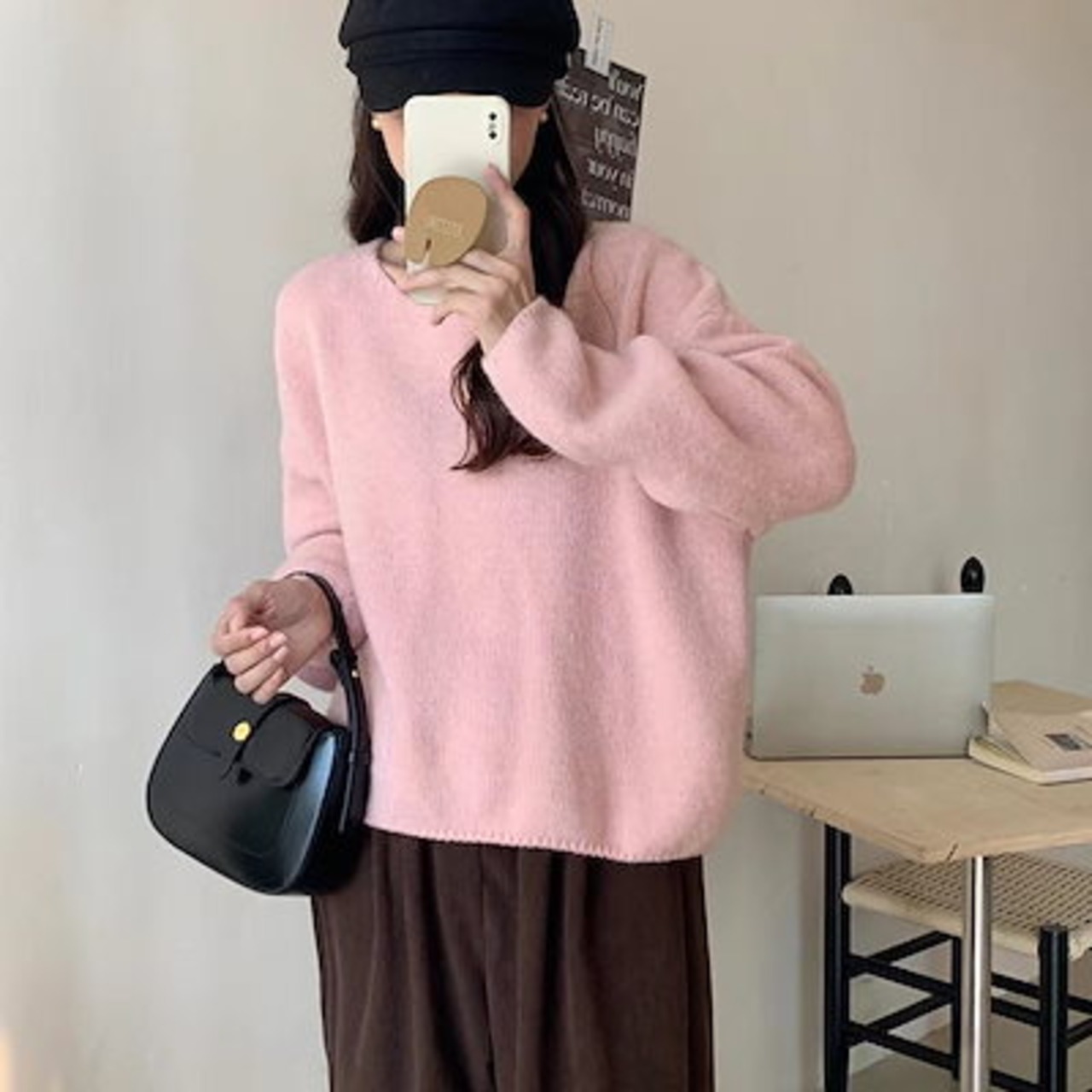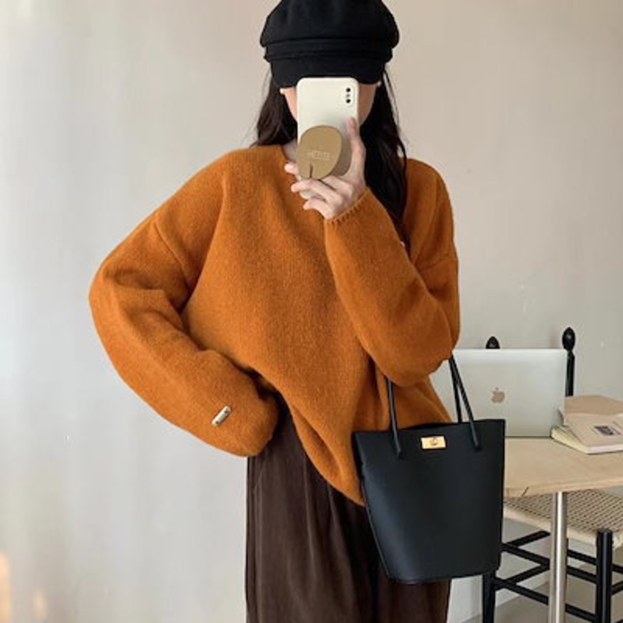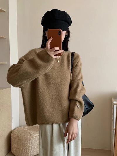 オレンジソフトワキシープルオーバーレディースベース2024秋冬新作シンプル風万能セータージャケット