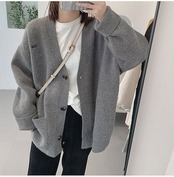 レトロなセーターレディース2024年秋新作ゆったりミディアム秋冬ニットカーディガン