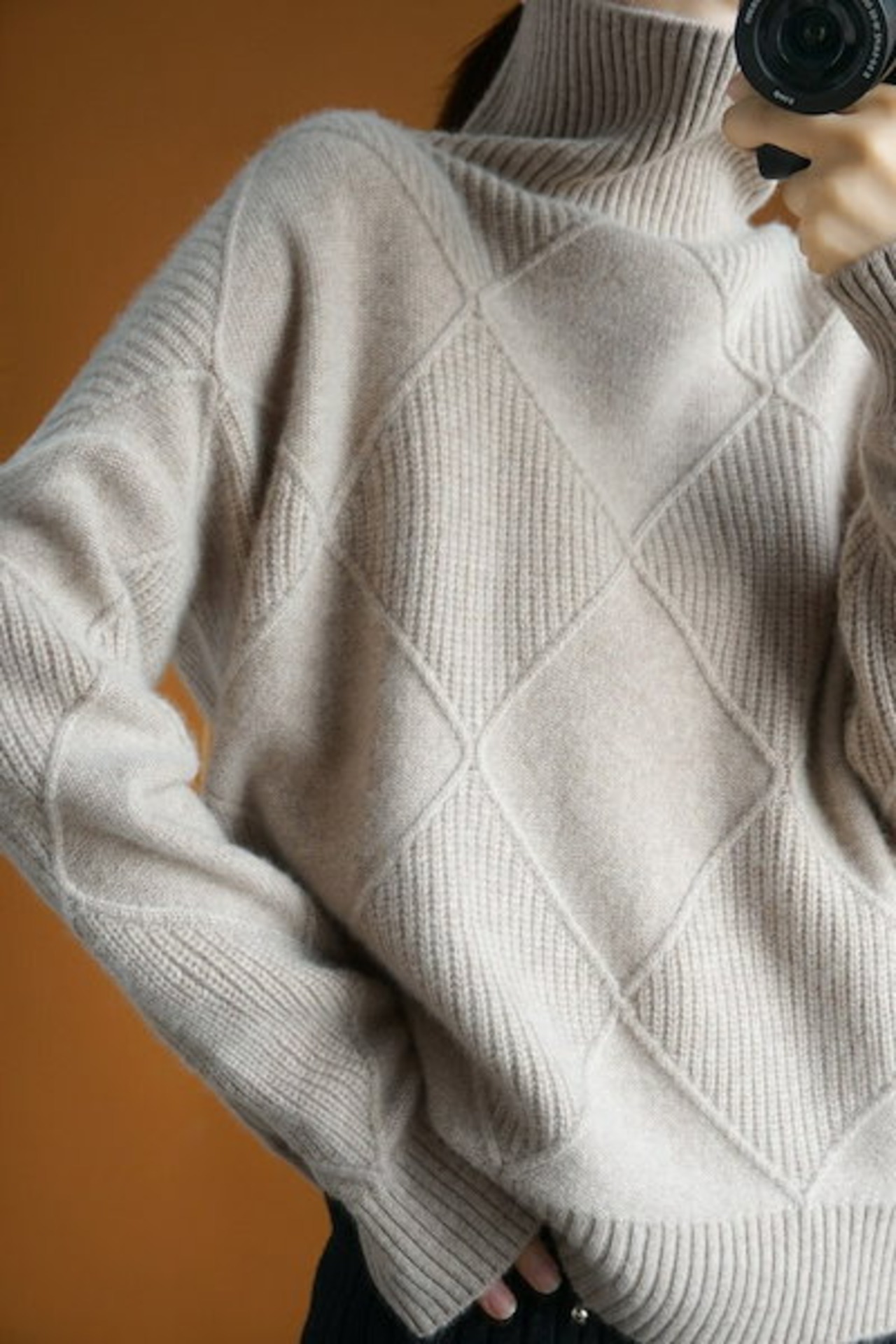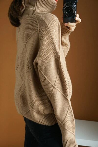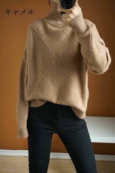 ハイネックニットレディースタートルネックローゲージケーブル編みローゲージニットハイゲージリブニット大きいサイズ長袖ニットセーターレイヤード切り替えトップスプルオーバーかわいいトレンド上品秋冬厚ざっくり