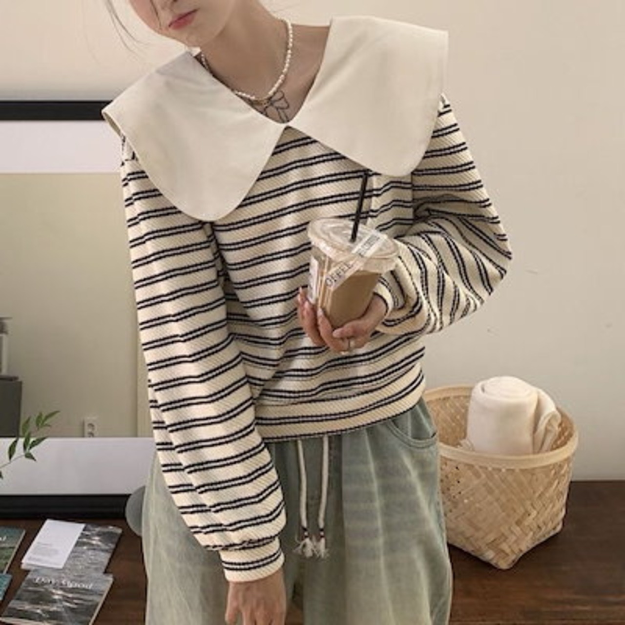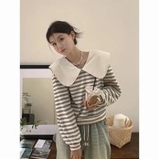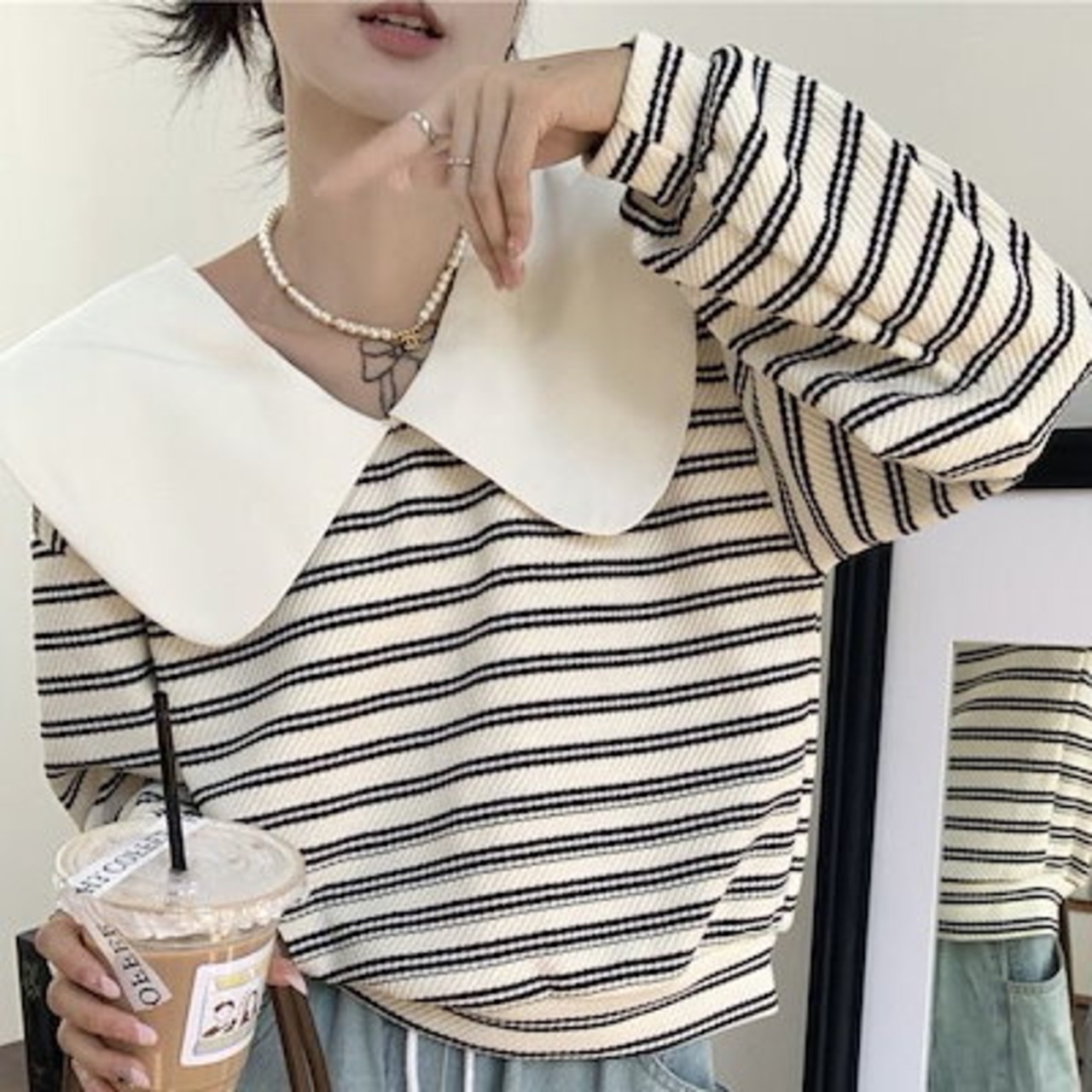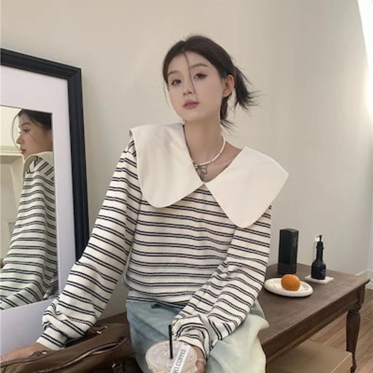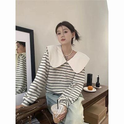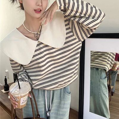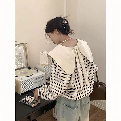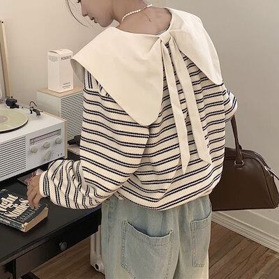 秋冬ファッションパーカーレディースストライプ長袖シャツスシャツったりブラウス