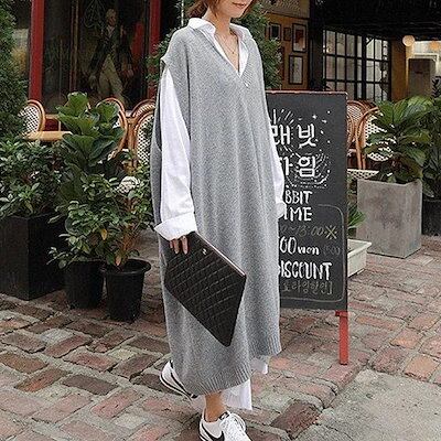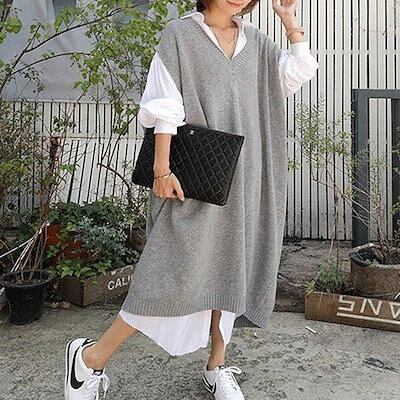 ロング 冬 ベスト ニットワンピース ゆったり 秋 大きいサイズ 長袖 レディース ワンピース モヘ