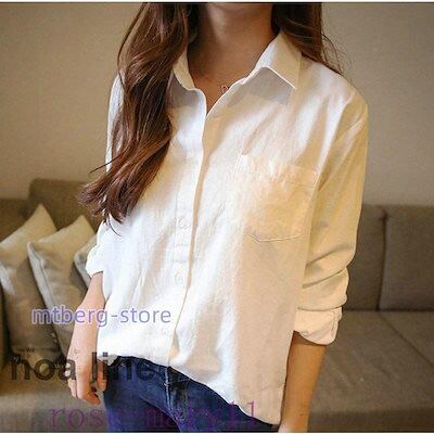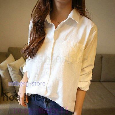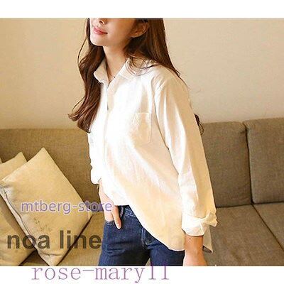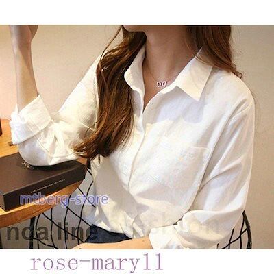 白シャツ レディース コットン リネン ブラウス 綿 麻 無地 シンプル 春 秋 冬 長袖 ゆるシャツ 大