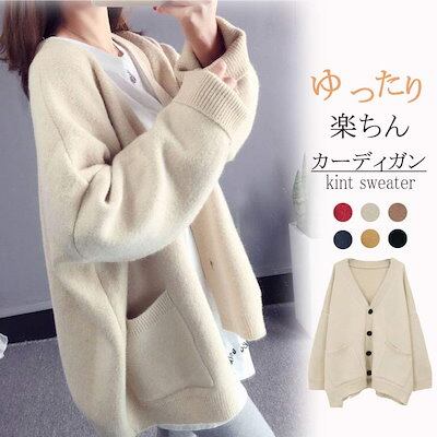 カーディガン レディース ゆったり 秋冬 ニットカーディガン ロング Vネック ボリューム ロングカーディガン 厚手 無地 前開き 羽織 ニットセーター カジュアル ポケット付き ドロップショルダー3