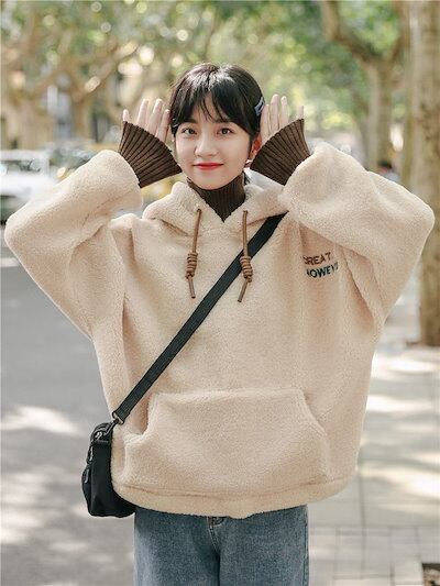 スウェット レディース 裏起毛 厚手 保温 冬 おしゃれ 高級感 汎用性が高い 新作 ゆったり フェイクレイヤード フード付き ラムズフリース ジャケット