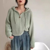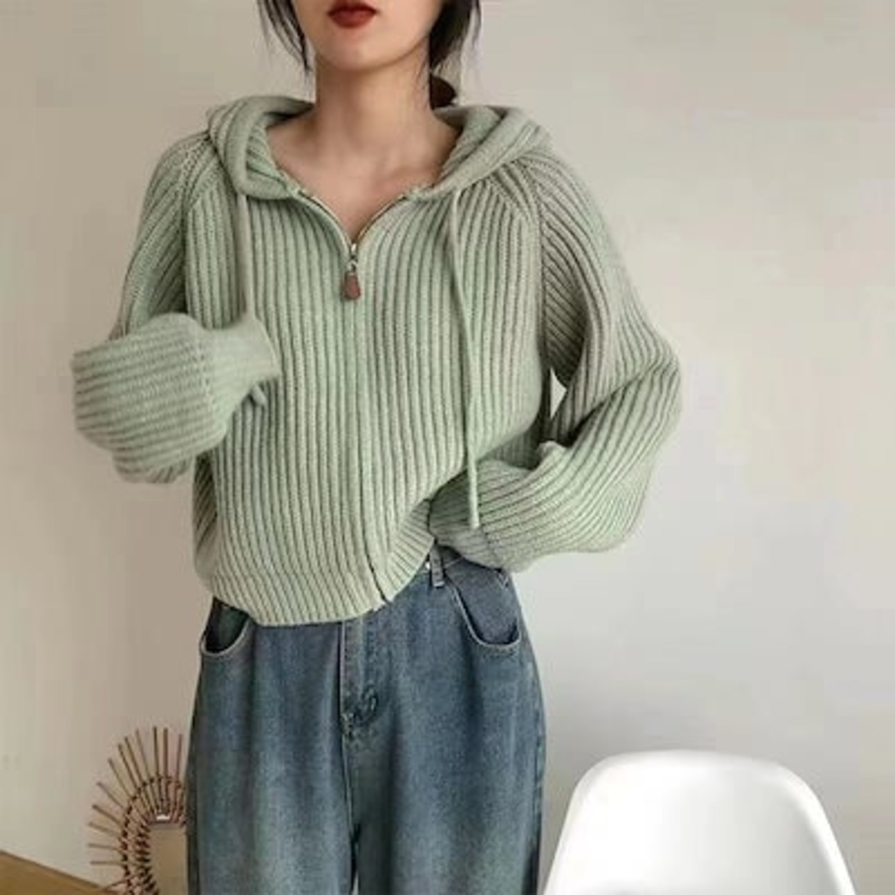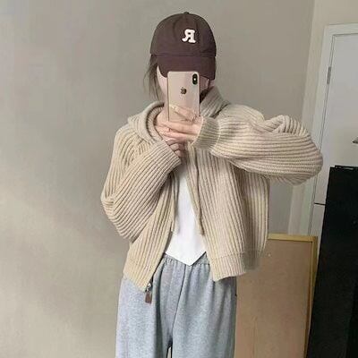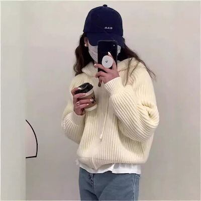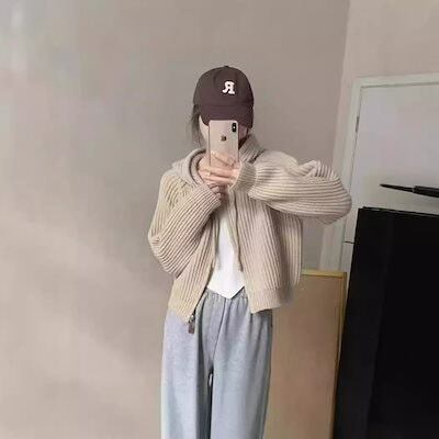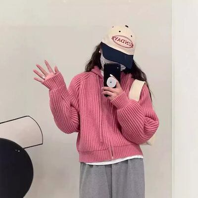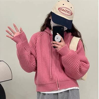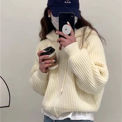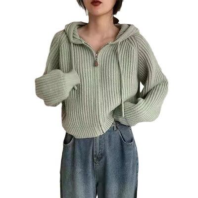 ニットセーターレディース秋冬秋冬の女性用フード付きショートニットカーディガントップ女性用の新しい多用途カジュアルセータージャケットゆったりとした怠惰なスタイル
