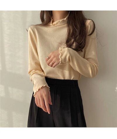 カ シンプル トップス 無地 フレア セーター 長袖 プルオーバー 女性用 ニット セーター 秋冬 薄手 インナー レディース ニットセーター 長袖 セーター ニット