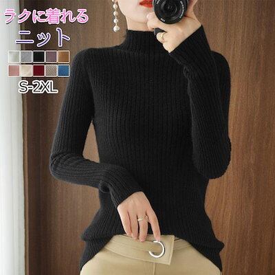 秋新作 セーター ニット レディース ハイネック 長袖 カシミヤタッチ きれいめ トップス 洗える ニットアップ tシャツ シンプル 秋冬