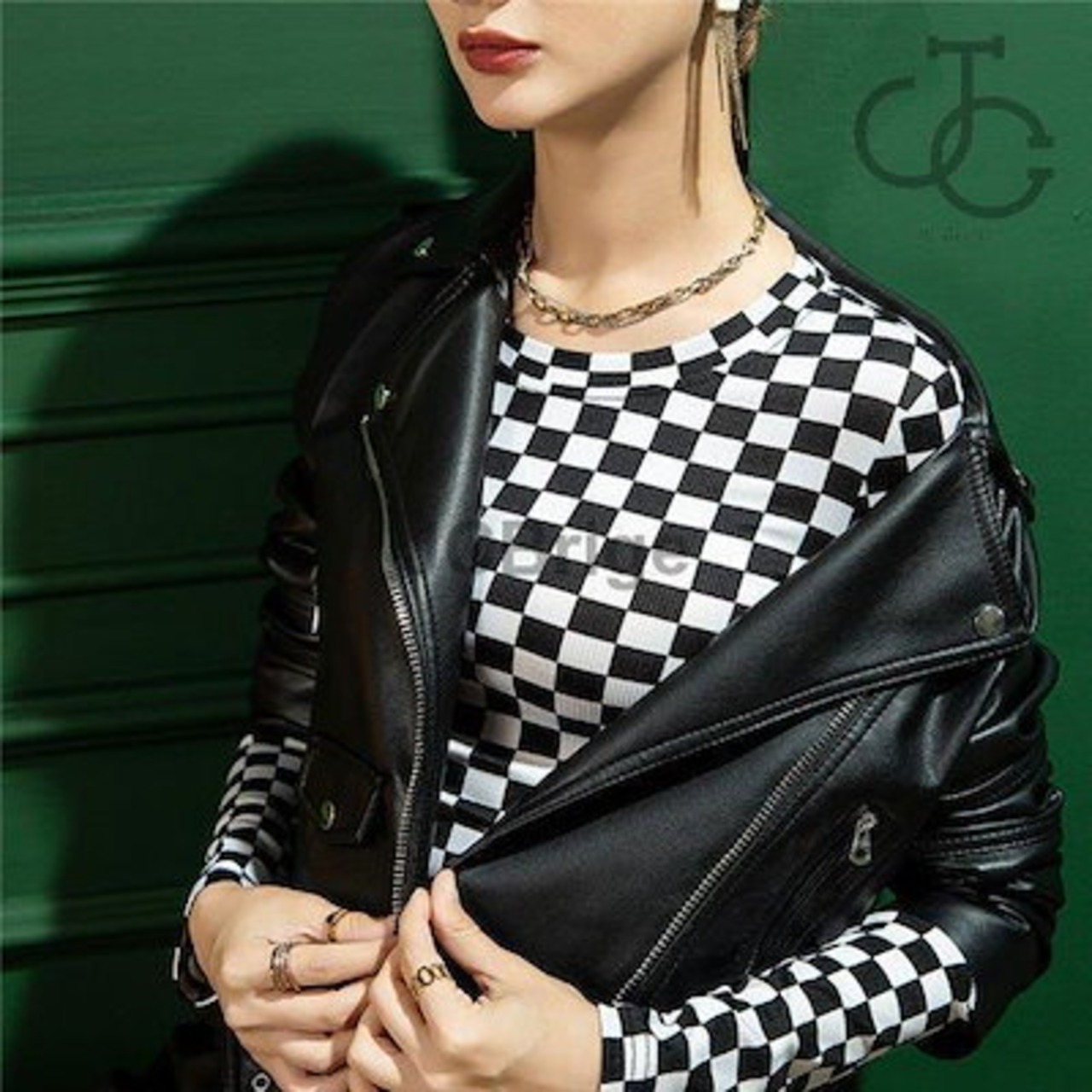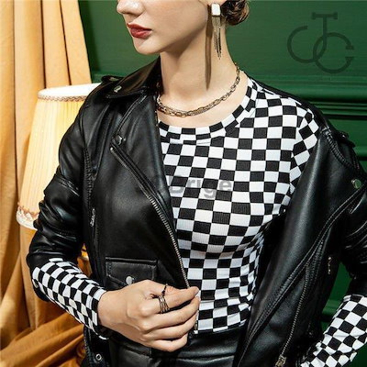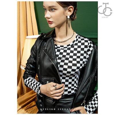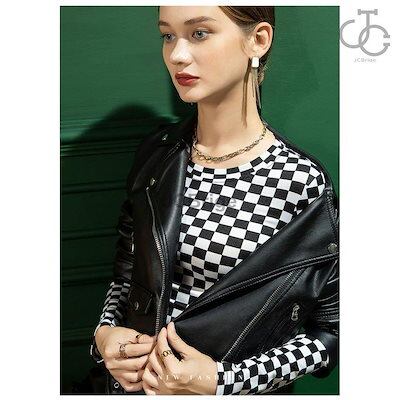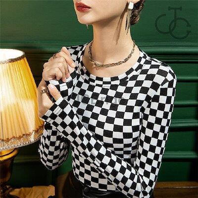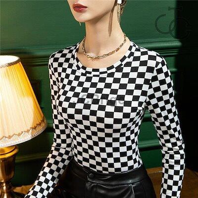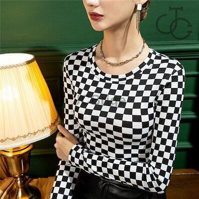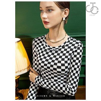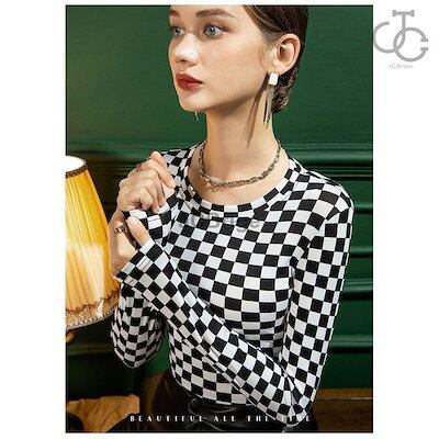インナー レディース 長袖 インナーシャツ トップス ストレッチ ストレッチ生地 重ね着 ブラック 黒 チェック柄 秋冬 肌着