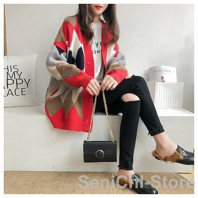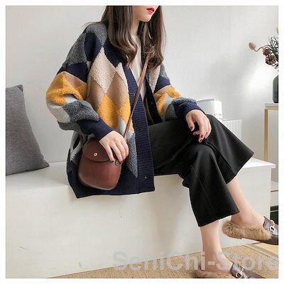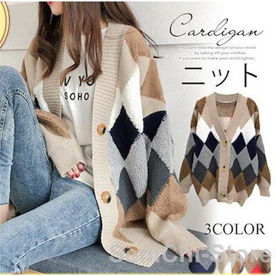 ニットカーデ レディース カーディガン 前開き トップス ボア アーガイル Vネック アウター カットソー ゆったり 羽織り 秋冬 通勤通学 大人
