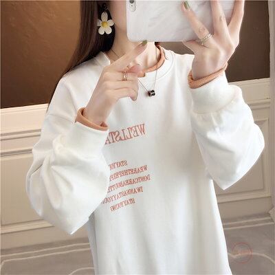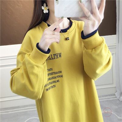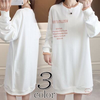 トレーナー レディース ロング丈 tシャツ チュニック ビッグtシャツ 薄手 カットソー 長袖 秋冬