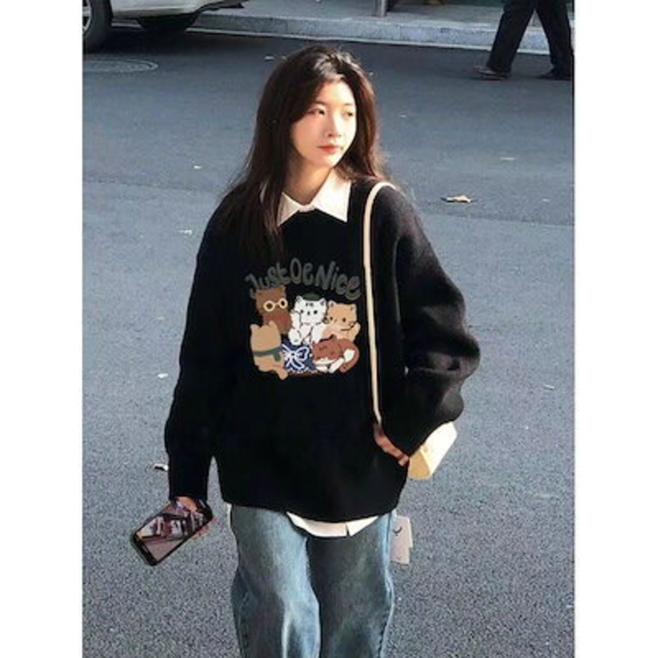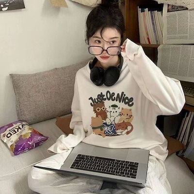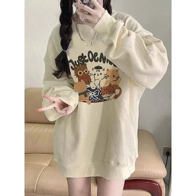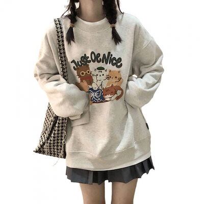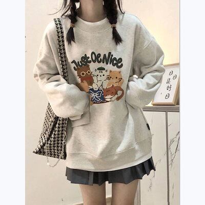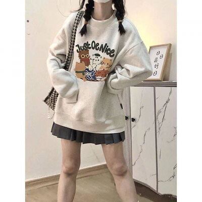【2024秋新入荷】アメリカンプルオーバースウェットシャツレディーストレンディな新作秋と冬プラスベルベットの厚みのある甘いインスタイル長袖ルーズで多用途