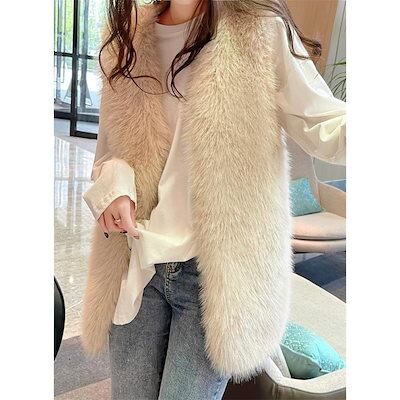 [PassionateRob0ts]数量限定 おまけ付ファー レディース 秋 冬 ロング 防寒ボア 暖かい 毛皮コート フェイクファー ふわふわ 冷え取り 前開き ジレ ギフト