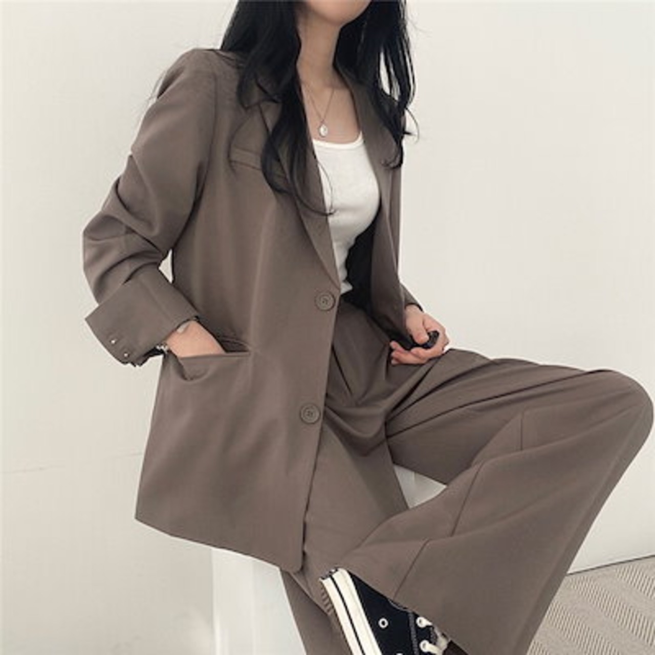 春 スーツ セットアップ レディース カジュアルゆったり 通勤 ジャケット/ワイドパンツ 二点セット 春 アウター フォーマル ビジネススーツ ママ スーツ 卒園式