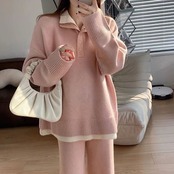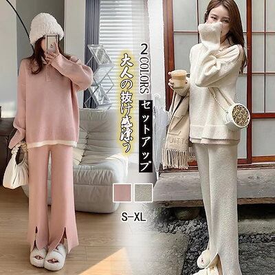 ベーシックニット 秋冬 新作 おしゃれ 気質 上下レディースセットアップ ニット アウター 二点セット セーター ワイドパンツ セットアップ 通勤 長袖セーター 福袋