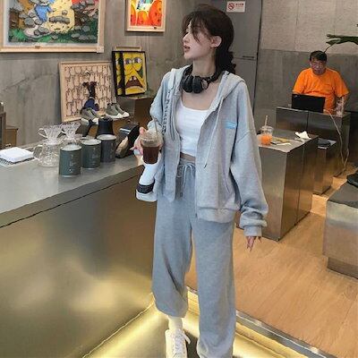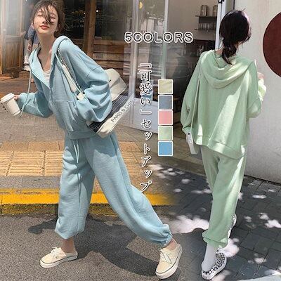 2024新作 カジュアル セットアップ レディース パーカー スウェット上下セット 運動 ワイドパンツ 二点セット 着痩せ 大きいサイズ 上下セット