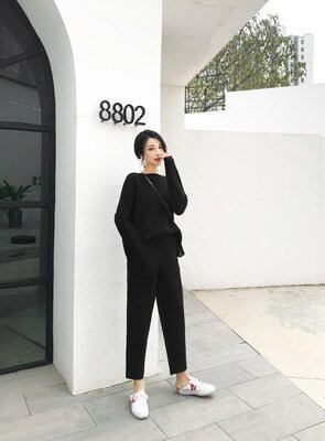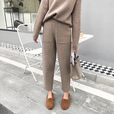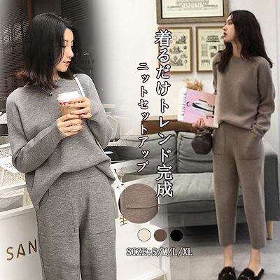 新作 おしゃれ カジュアル 気質 レディースセットアップ 百掛け セーター ワイドパンツ カジュアルパンツ 二点セット シンプル 涼しく楽ちんセットアップ セット