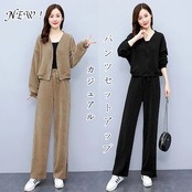 新作 おしゃれ 気質 カジュアル セットアップ 長袖 ジャケット ワイドパンツ 二点セット オシャレ 可愛い 百掛け 通勤 レディースファッション 大きいサイズ