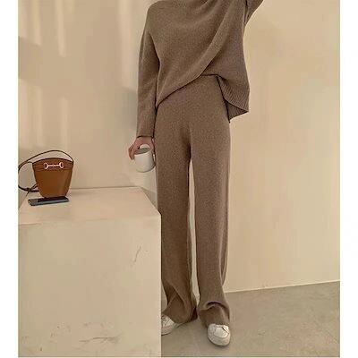 おしゃれ 気質 アウター レディースセットアップ 上下セット セーター ワイドパンツ セットアップ 通勤 シンプル 福袋