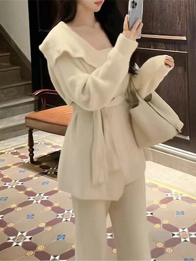 プ 3点セットスウェット レディース保温 秋冬ワイドパンツ着痩せ