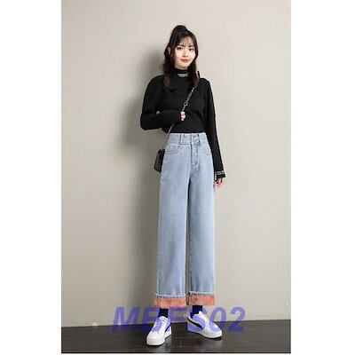 ワイドデニムパンツ レディース 裏ボア 極暖 厚手 暖かい ズボン パンツ 裏起毛パンツ デニムパンツ 暖かい 防風 防寒 あったか 秋と冬おすすめ商品