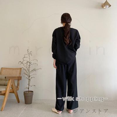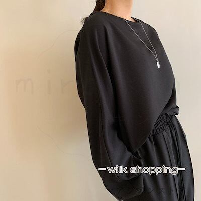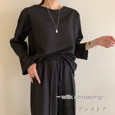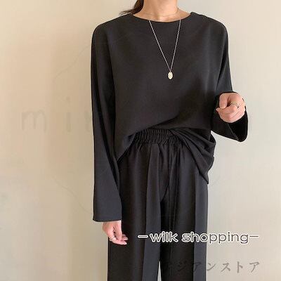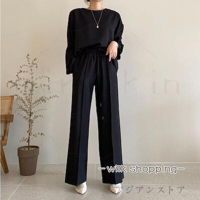 セットアップ レディース Tシャツ ワイドパンツ クルーT イージーパンツ カットソー トレーナー ロングパンツ 長ズボン 上下セット ウエストゴム 紐付きおすすめ商品