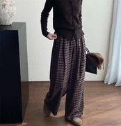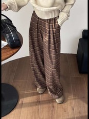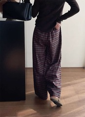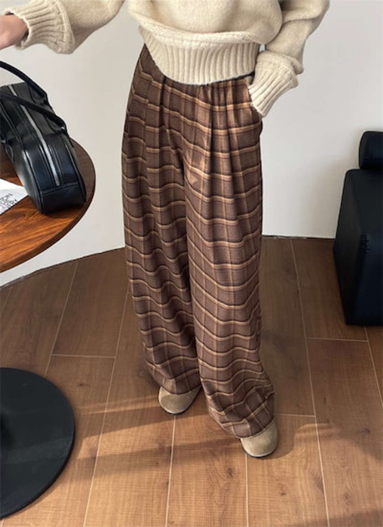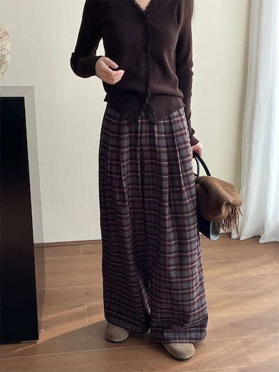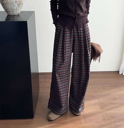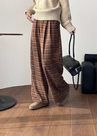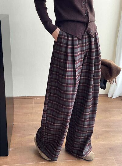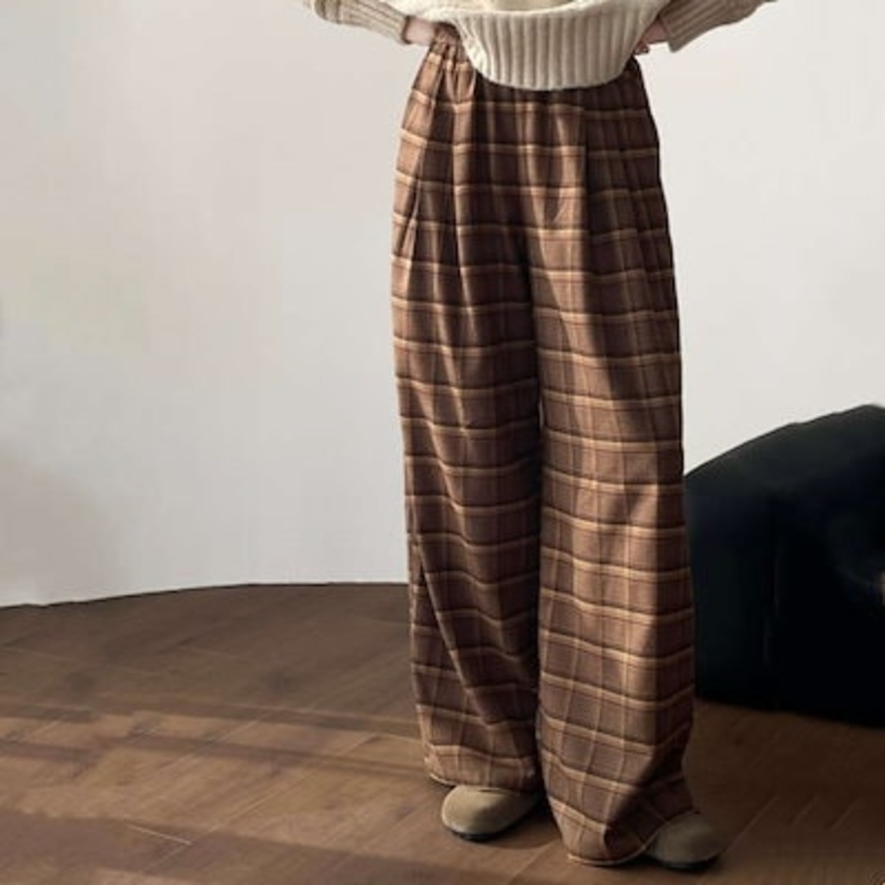 チェック ワイドパンツ レディース タックパンツ 秋 冬 ボトムス ロング丈 ウエストゴム パンツ ポケット ふんわり ズボン あったか ゆったり リラックス ウールタッチ ハイウエスト おしゃれ 美