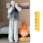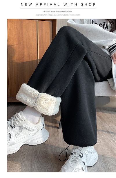 厚手 裏起毛 スラックスパンツ ワイドパンツ ロイワイドパンツ タイプ ゆったり ストレートパンツ 韓国ファッション レッグパンツ レディース秋冬 ハイウエス 脚長効果!スキニーパンツ ひんやりボトム