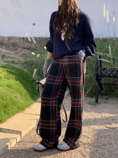 冬の厚めロングパンツ レディース ワイドパンツ ウエストゴム ハイウエスト ウール混 ガウチョ ボトムス パンツ ズボン ワイド 通勤 オフィス ひんやりボトムス7
