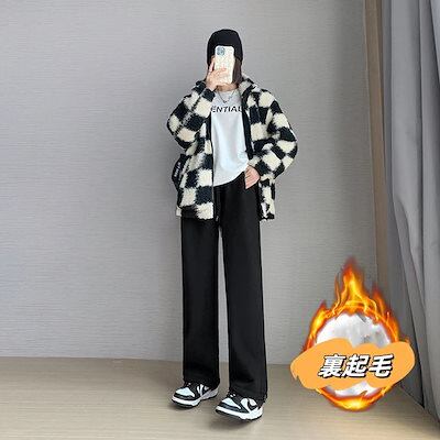 厚手 裏起毛 ワイドパンツ スラックスパンツ ロイワイドパンツ タイプ ストレートパンツ レッグパンツ レディース秋冬 ハイウエススキニーパンツ コーデュロイパンツ 脚長効果! ひんやりボトムス7